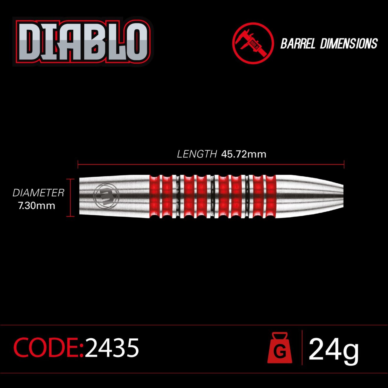 Steelové šipky Winmau Diablo jsou wolframové šipky (90% tungsten) s barrely, které mají červené drážkování a zdobí je logo Winmau.