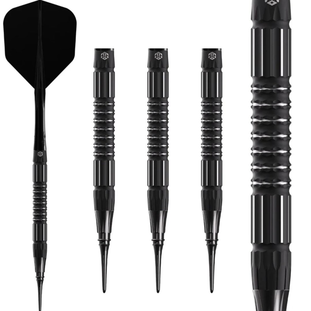Softové šipky Caliburn Sword jsou wolframové šipky (95% tungsten) v úchvatném designu. Černé barrely mají unikátní drážkování a skvěle padnou do ruky.