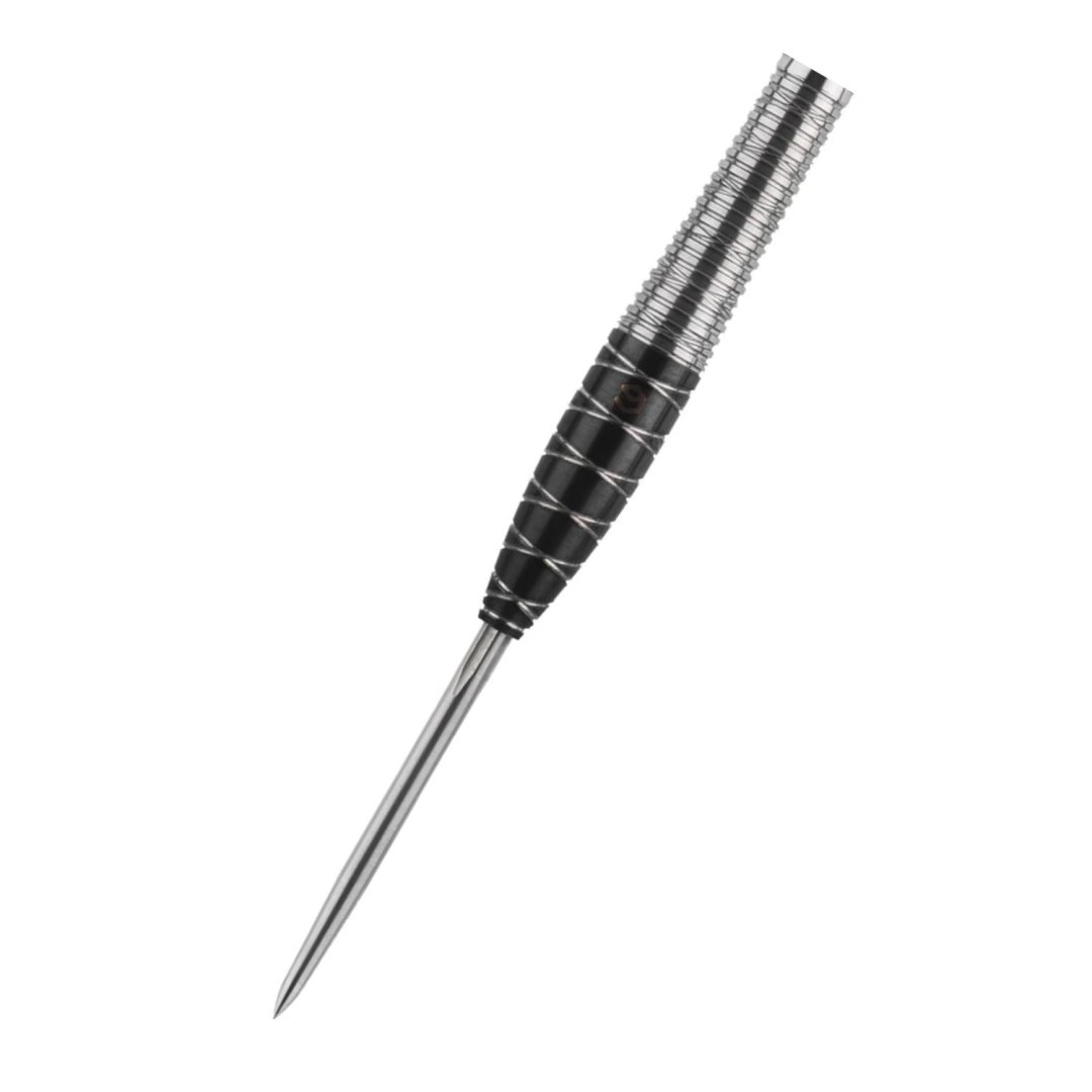 Steelové šipky Caliburn Spiro jsou wolframové šipky (90% tungsten) s černo-stříbrnými barrely v originálním designu.