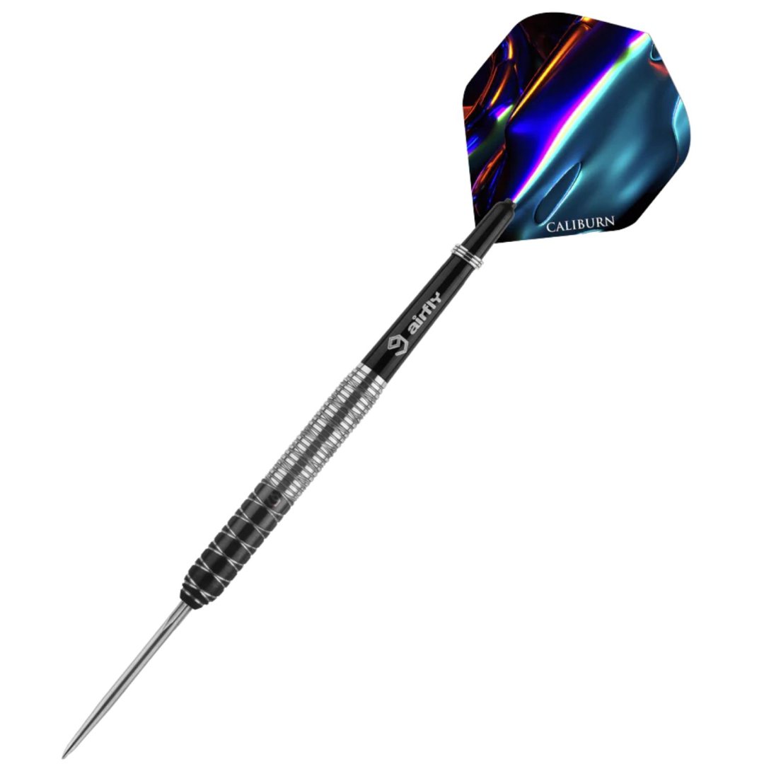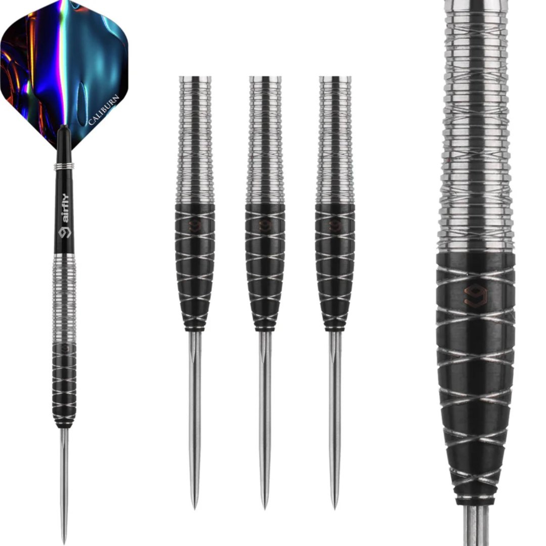 Steelové šipky Caliburn Spiro jsou wolframové šipky (90% tungsten) s černo-stříbrnými barrely v originálním designu. Barrely jsou doplněny nylonovými násadkami a letkami Caliburn. Šipky mají vyměnitelný systém hrotů Caliburn Replaceable Point System. Součástí balení NENÍ klíč pro výměnu hrotů Caliburn (X1997).