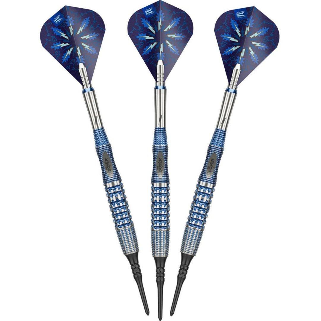 Softové wolframové šipky Phil Taylor Power Gx2 jsou wolframové šipky (95% tungsten) v jedinečném designu. Barrel má torpédový tvar, Quattro grip a drážky zvýrazněné modrou barvou.