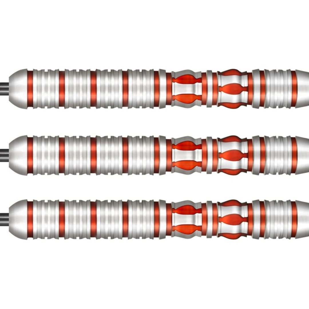 Steelové šipky Shot Roman Empire Juno jsou wolframové šipky (90% tungsten) s barrely s červenými drážkami v jedinečném designu.